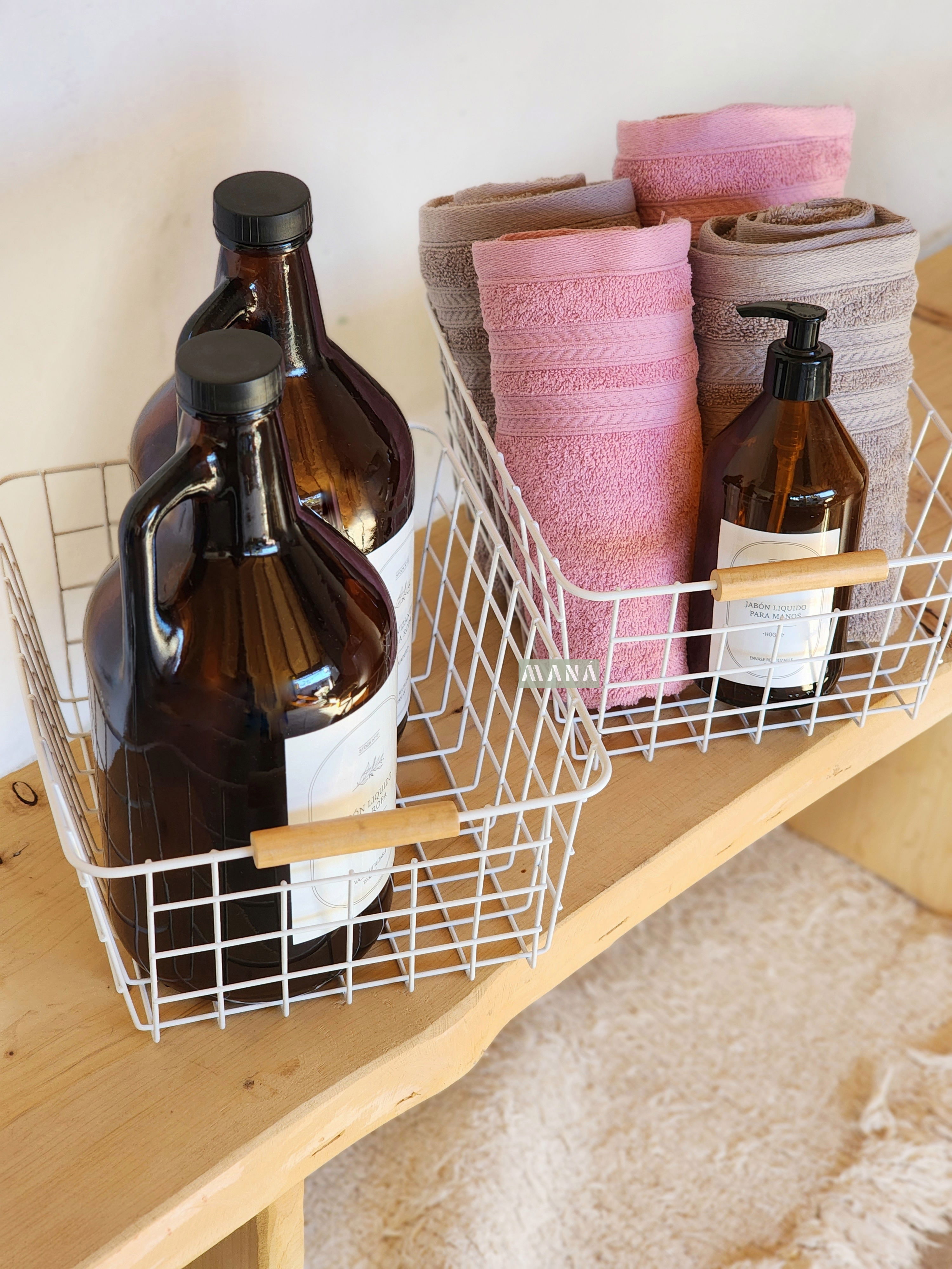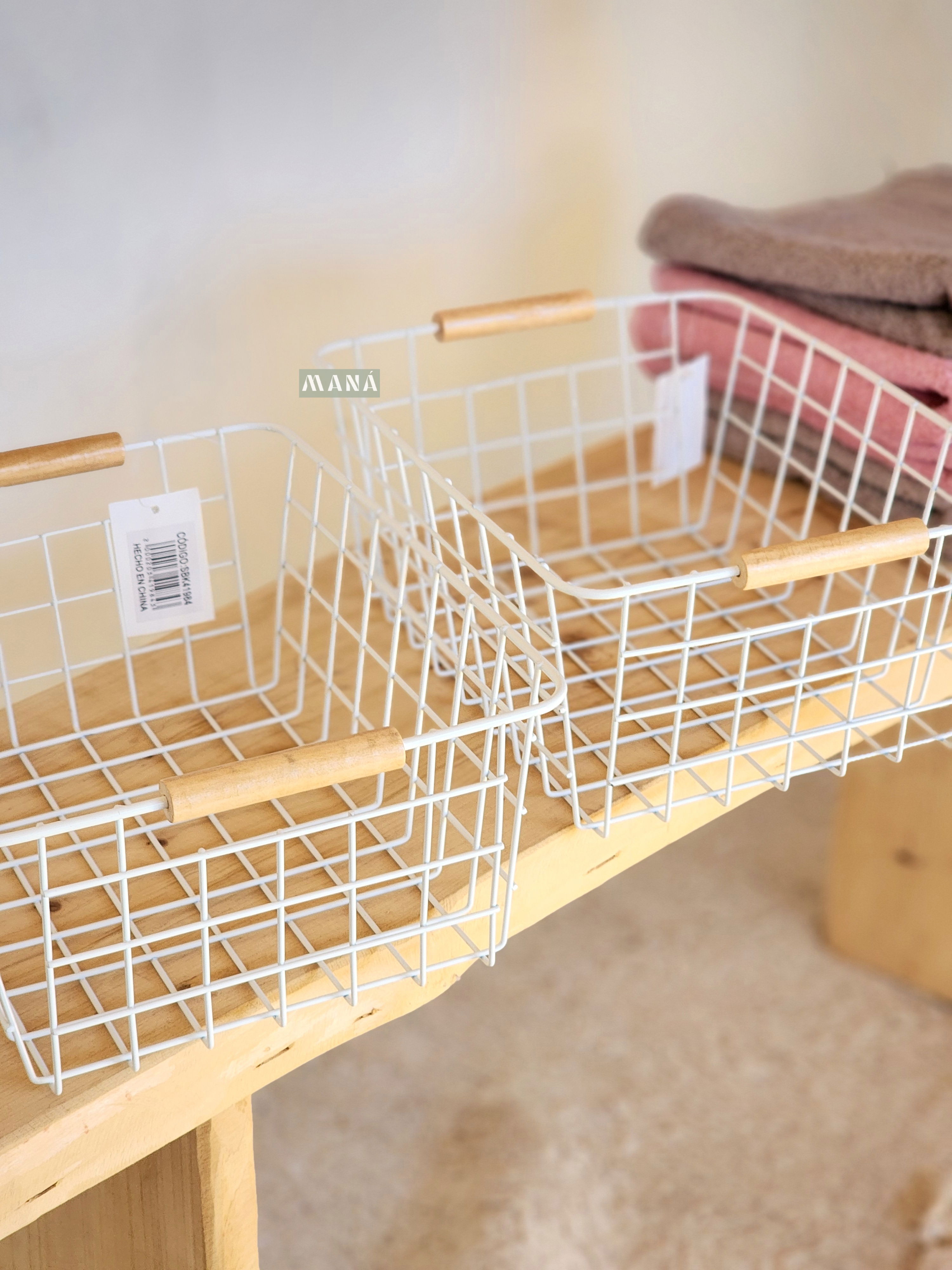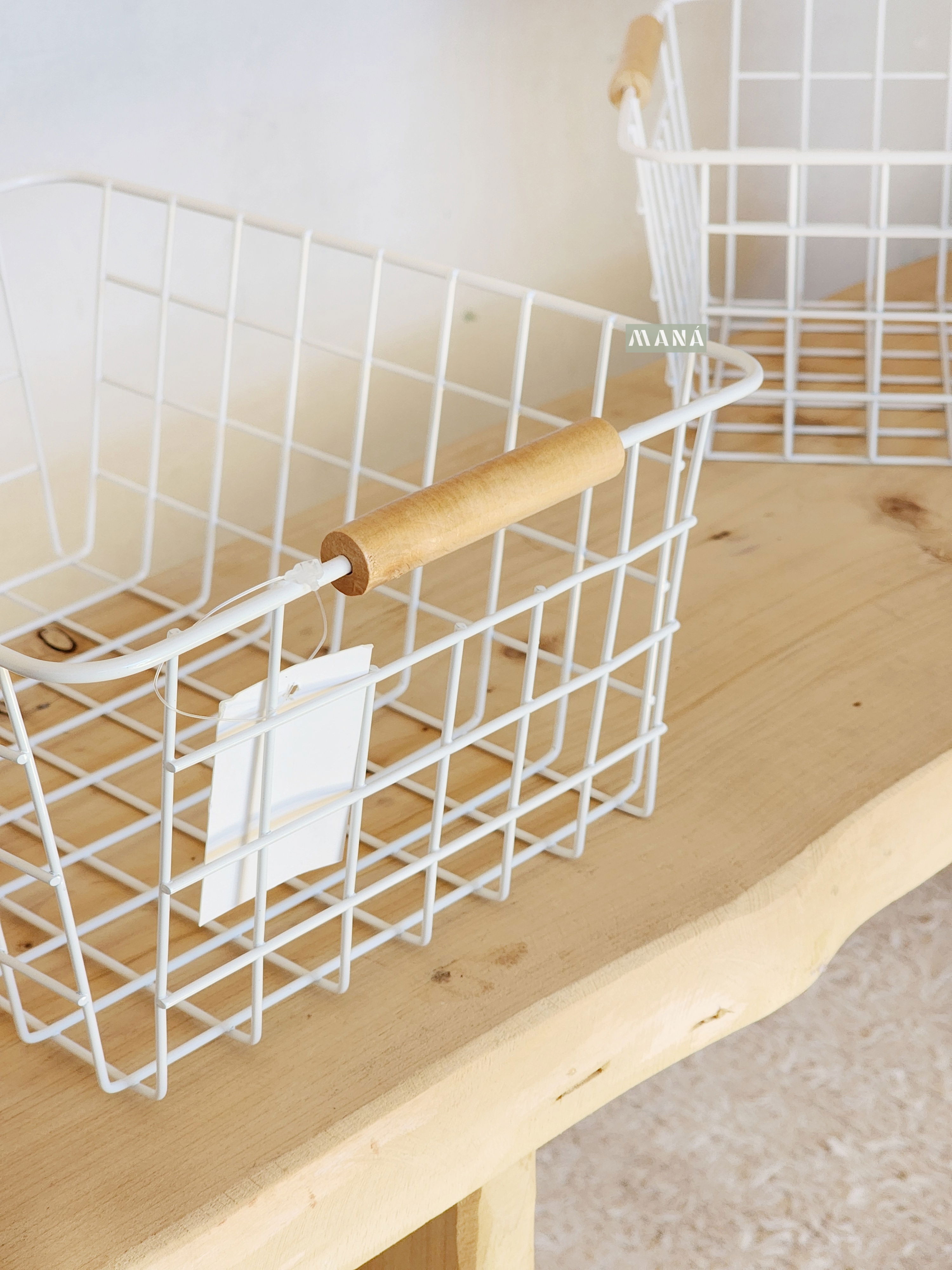 Cesta de hierro con manijas de bambú