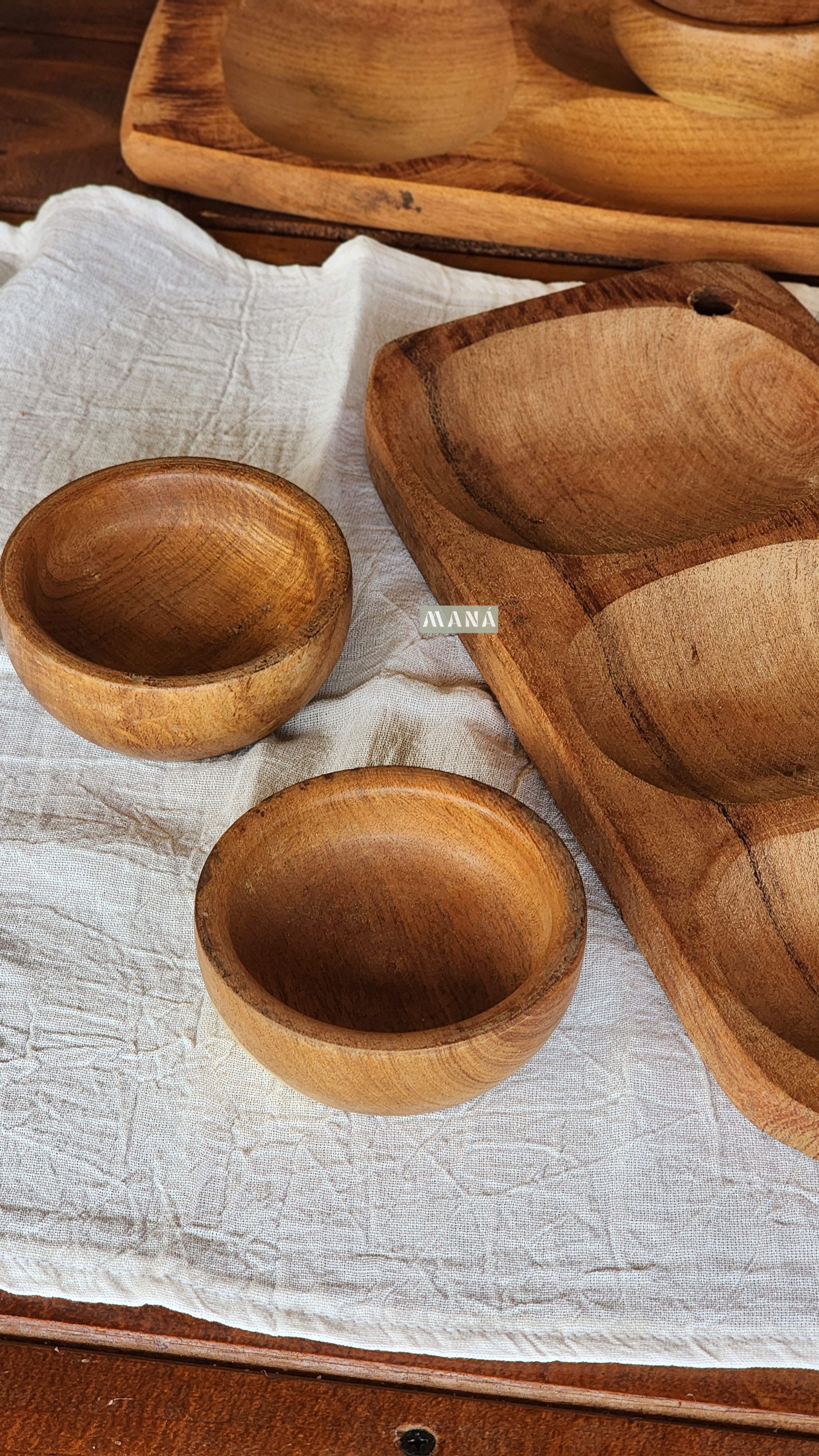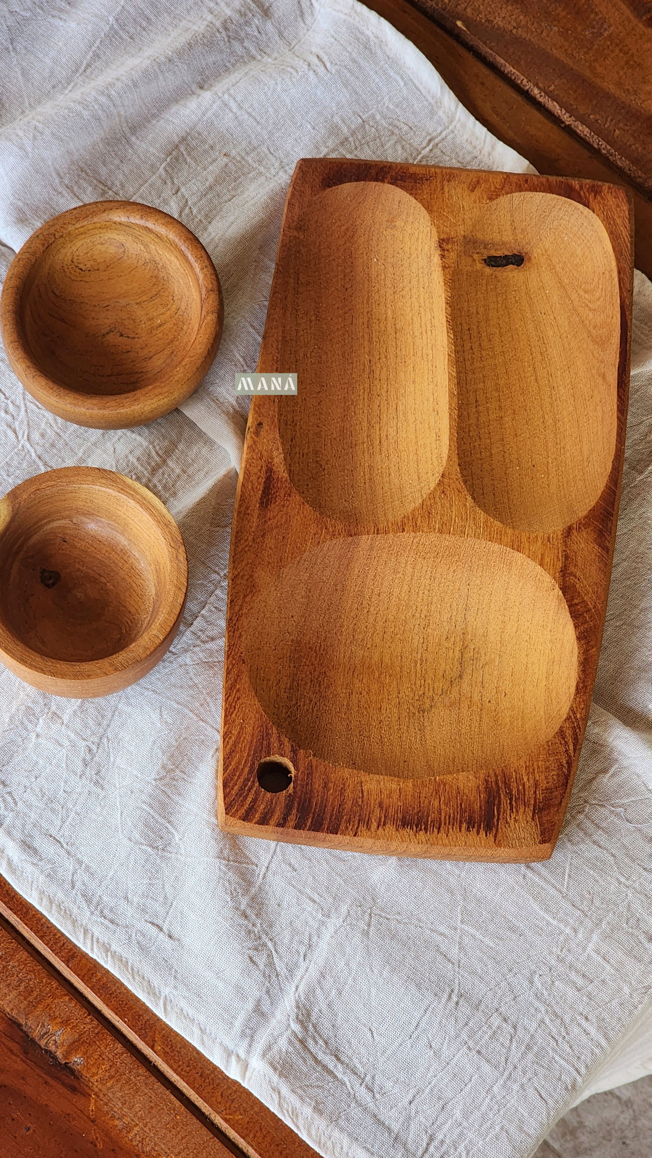Este set está fabricado artesanalmente en madera de algarrobo.