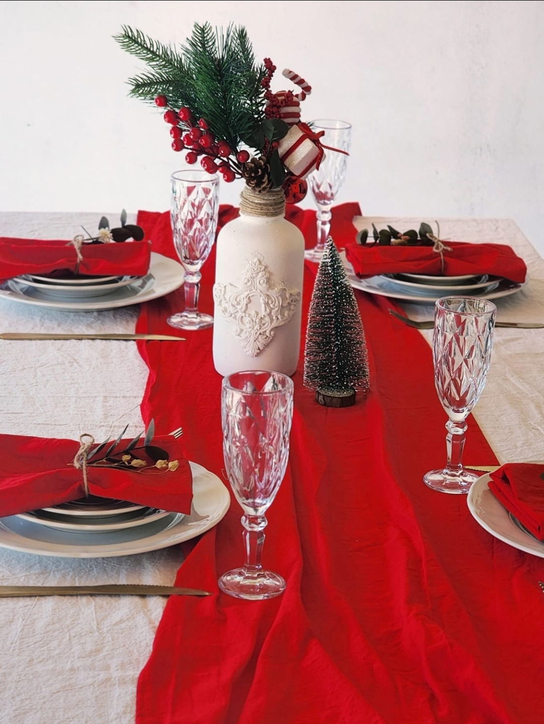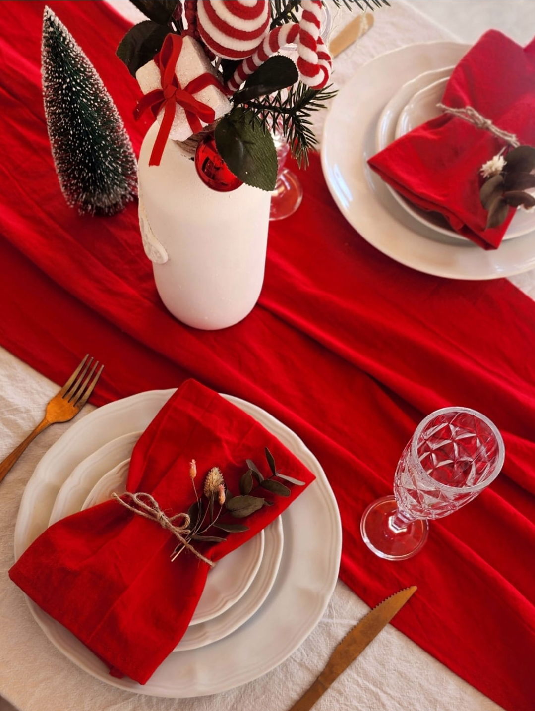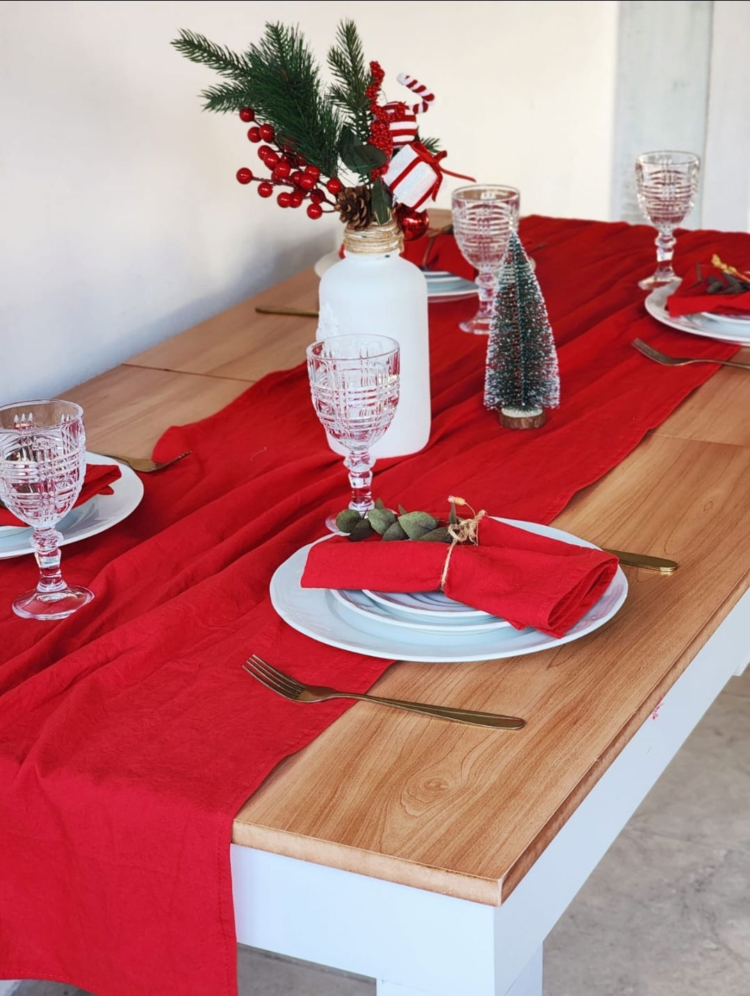 SET ROJO | CAMINO DE MESA + PACK ×4 SERVILLETAS